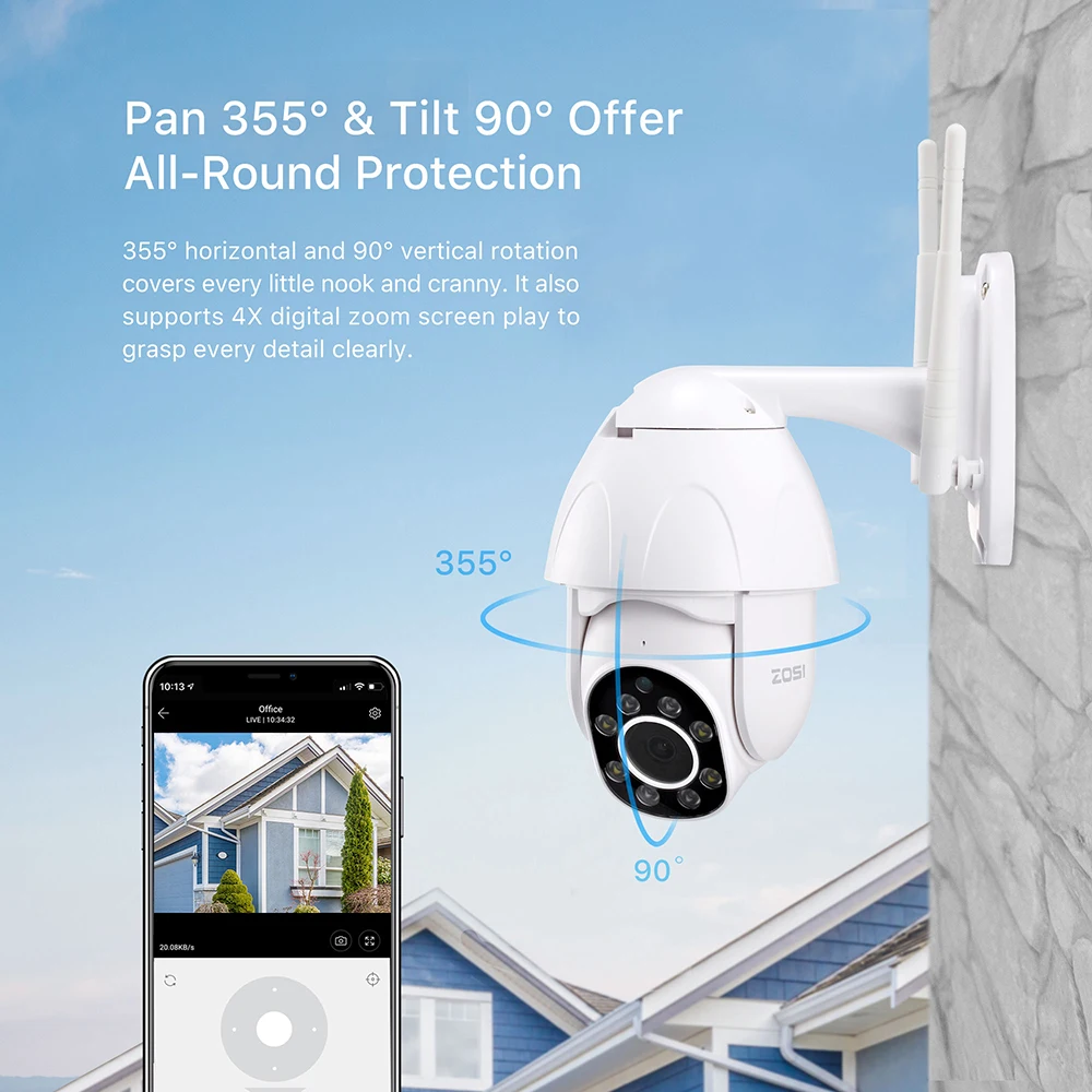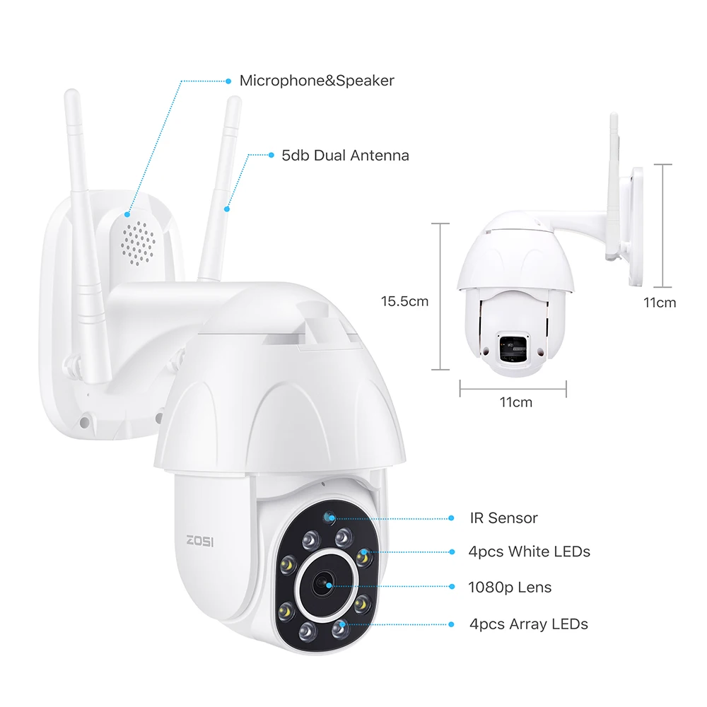 ZOSI 1080P PTZ IP Camera Wifi Outdoor Speed Dome Wireless Wifi Security Camera Pan Tilt 4X Digital
